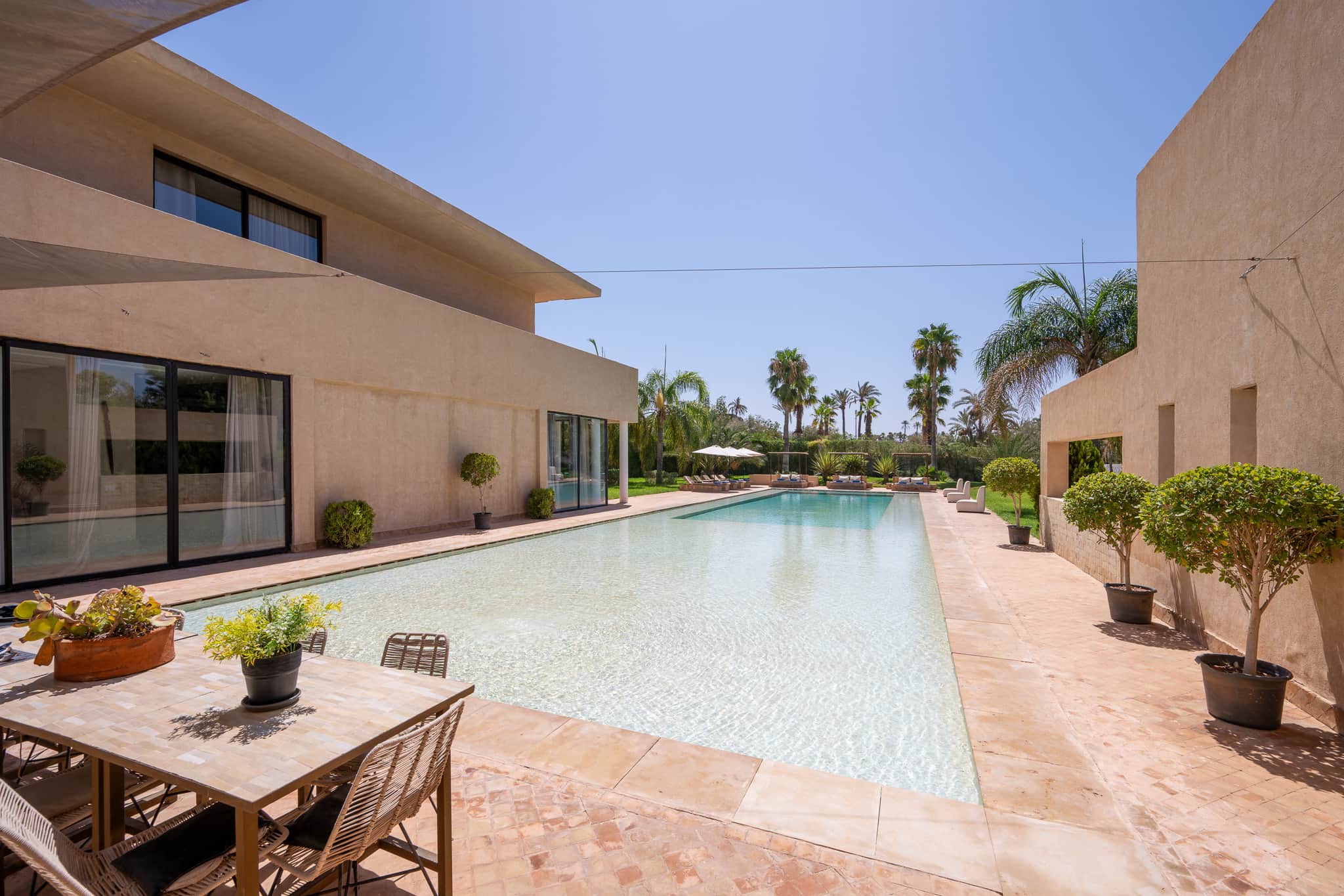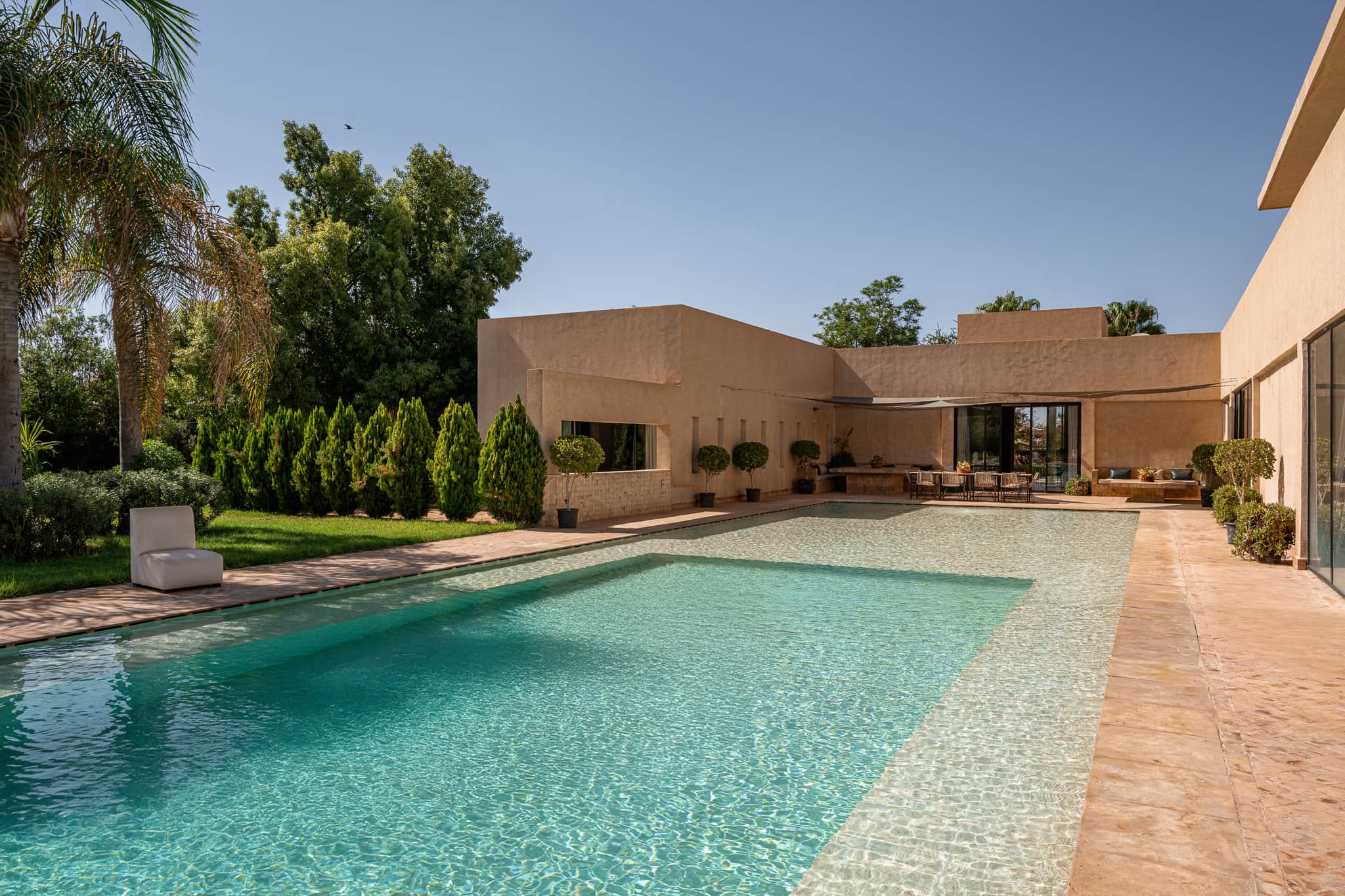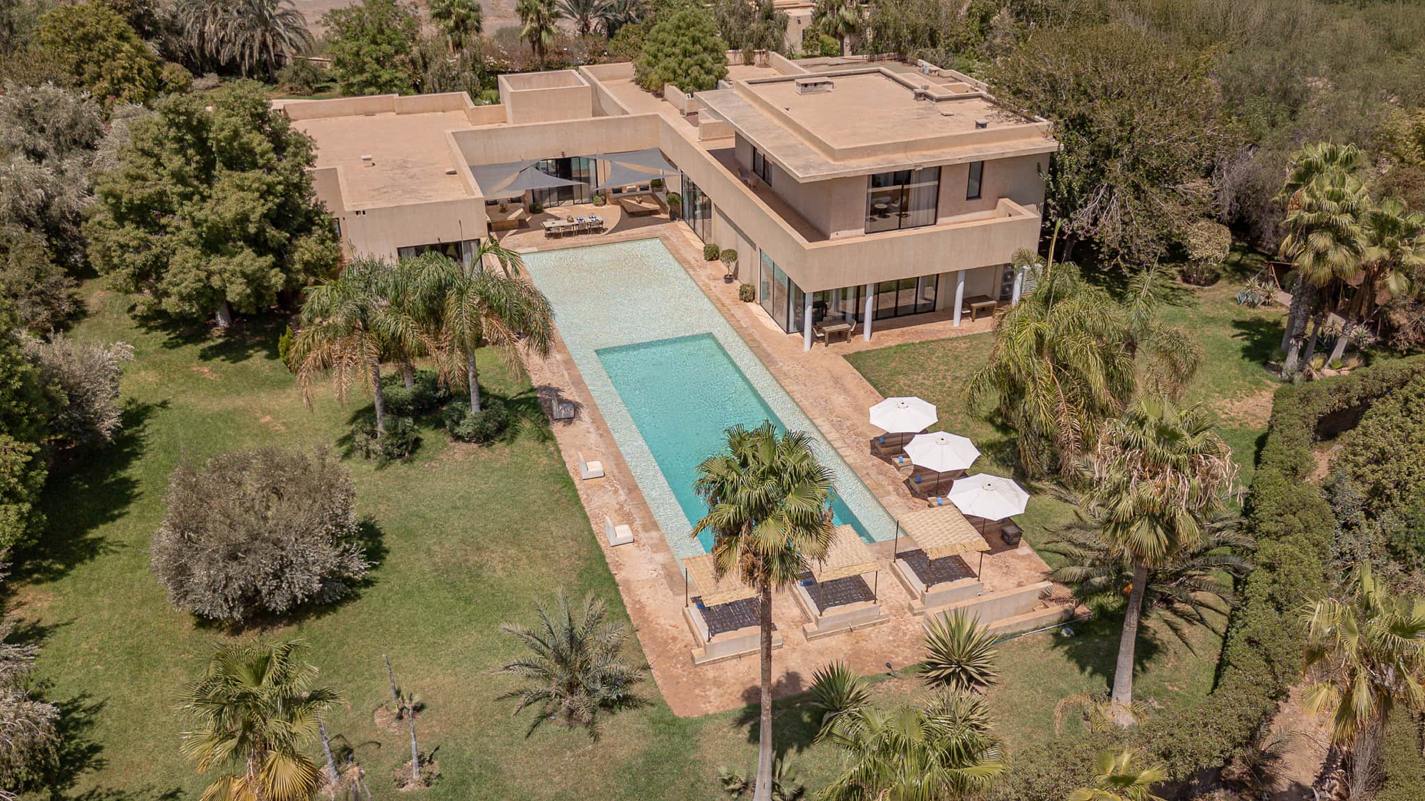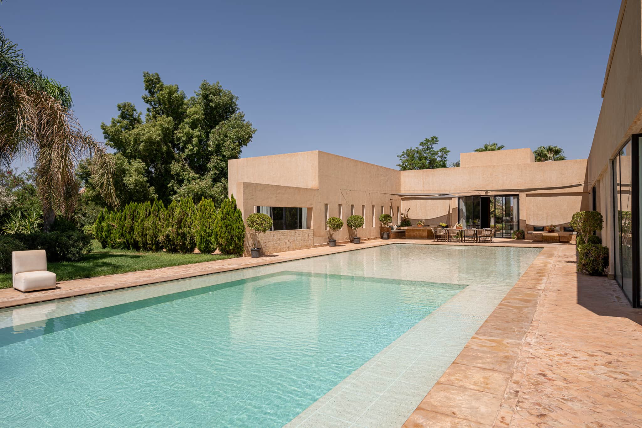 Organisée autour d’une piscine majestueuse s’étendant au milieu d’un jardin luxuriant, la villa allie authenticité marocaine et élégance contemporaine. Ses intérieurs spacieux et lumineux, décorés avec raffinement, créent une atmosphère propice à la détente et au partage.
