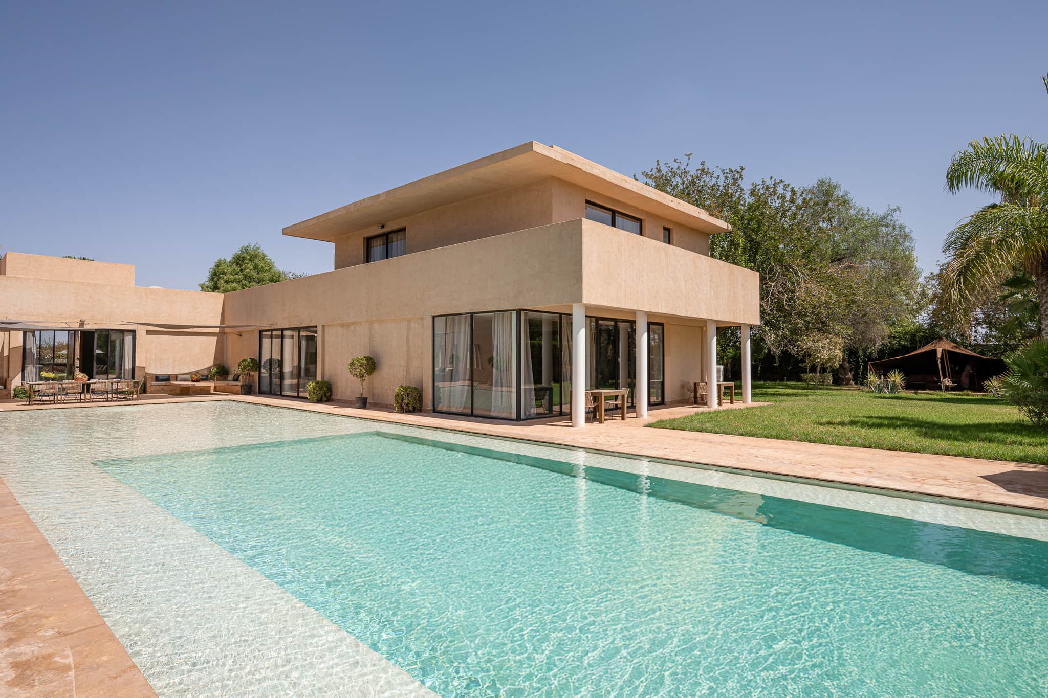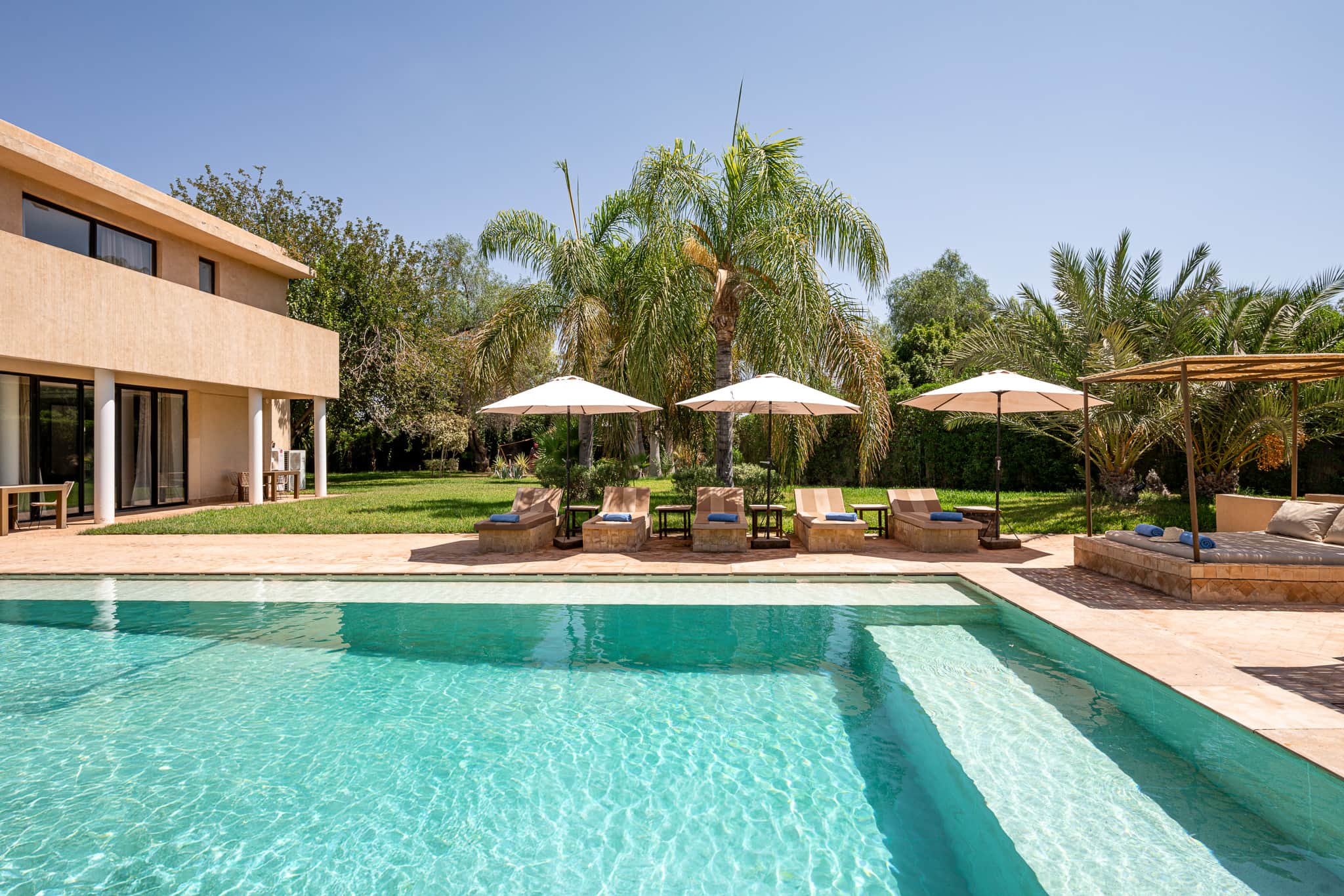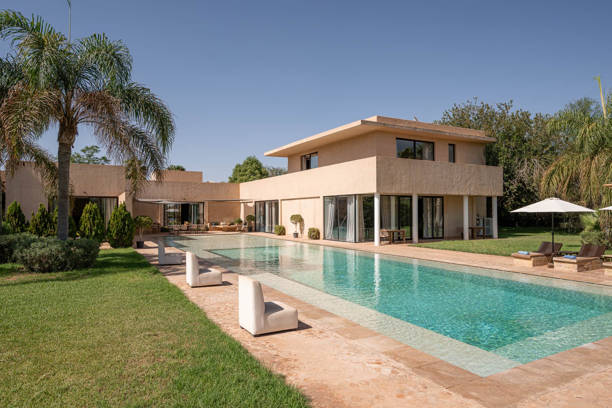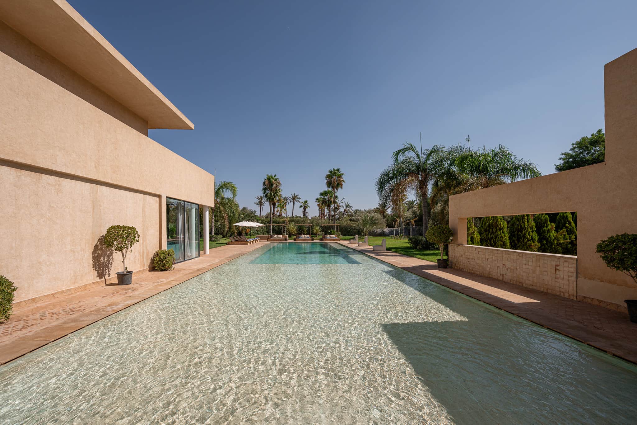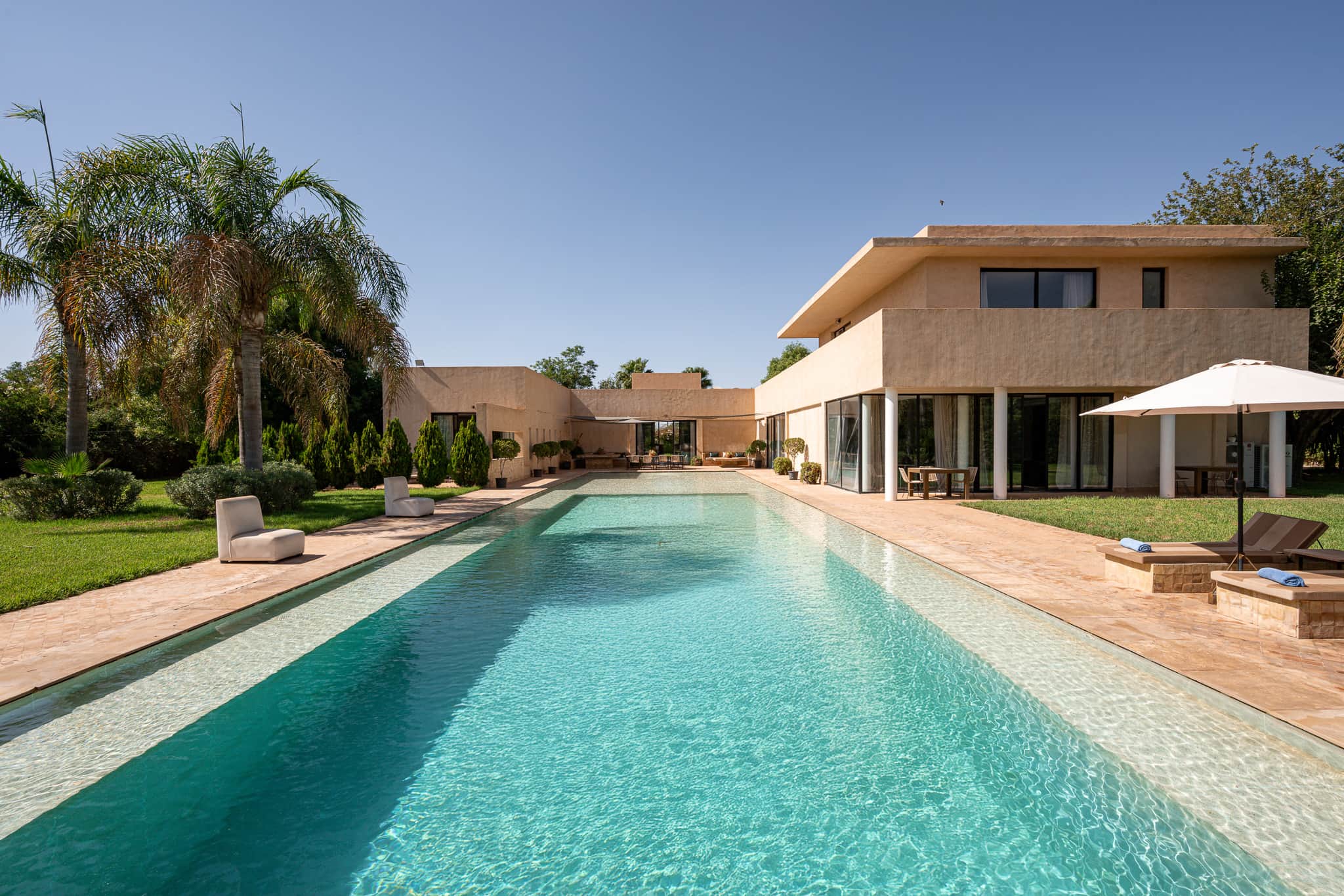 Organisée autour d’une piscine majestueuse s’étendant au milieu d’un jardin luxuriant, la villa allie authenticité marocaine et élégance contemporaine. Ses intérieurs spacieux et lumineux, décorés avec raffinement, créent une atmosphère propice à la détente et au partage.