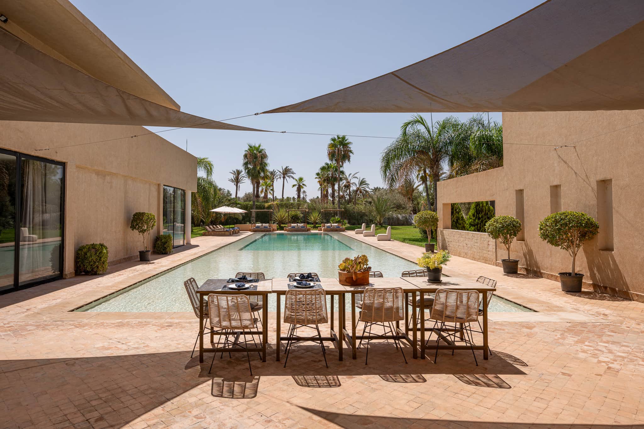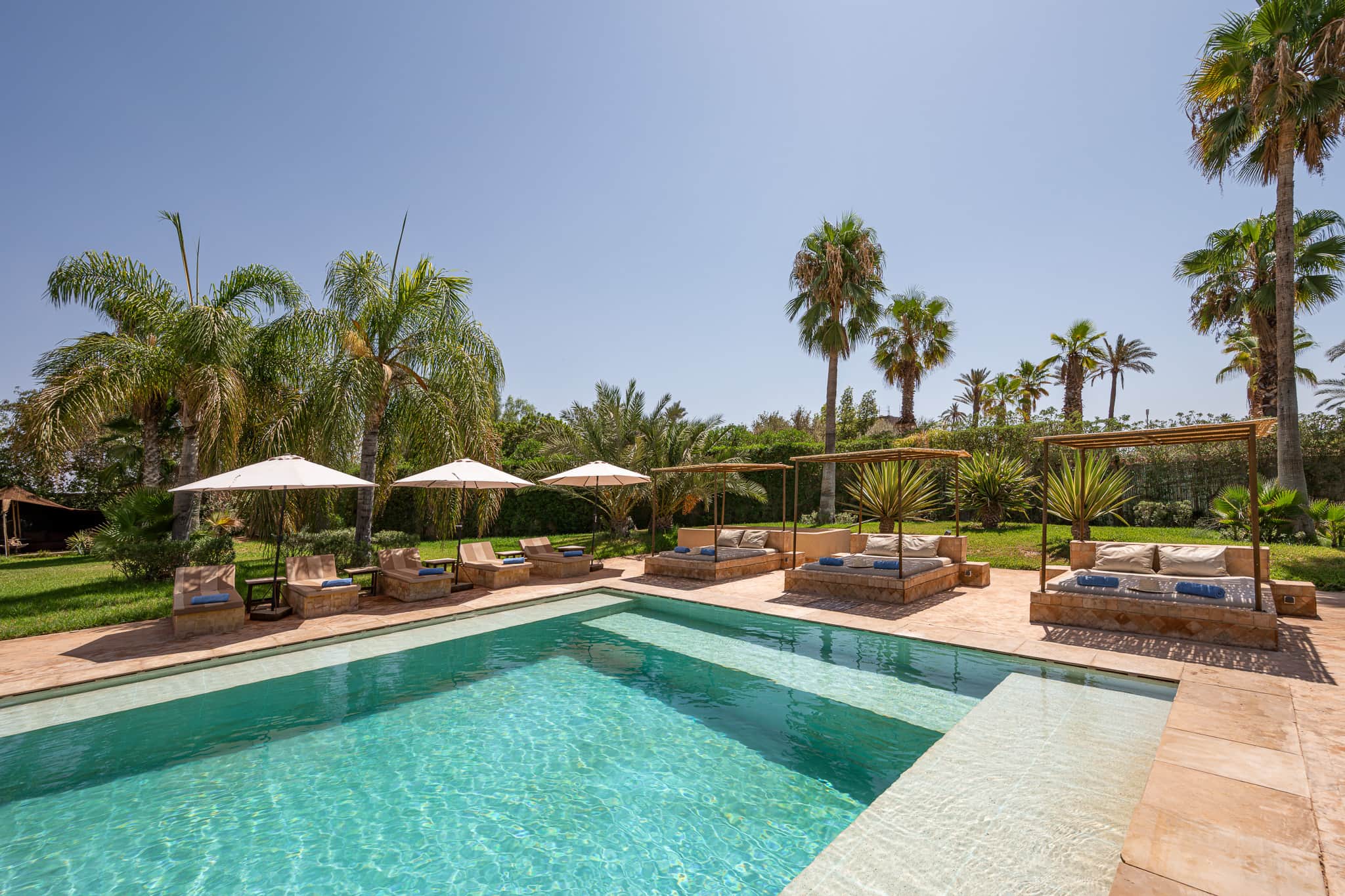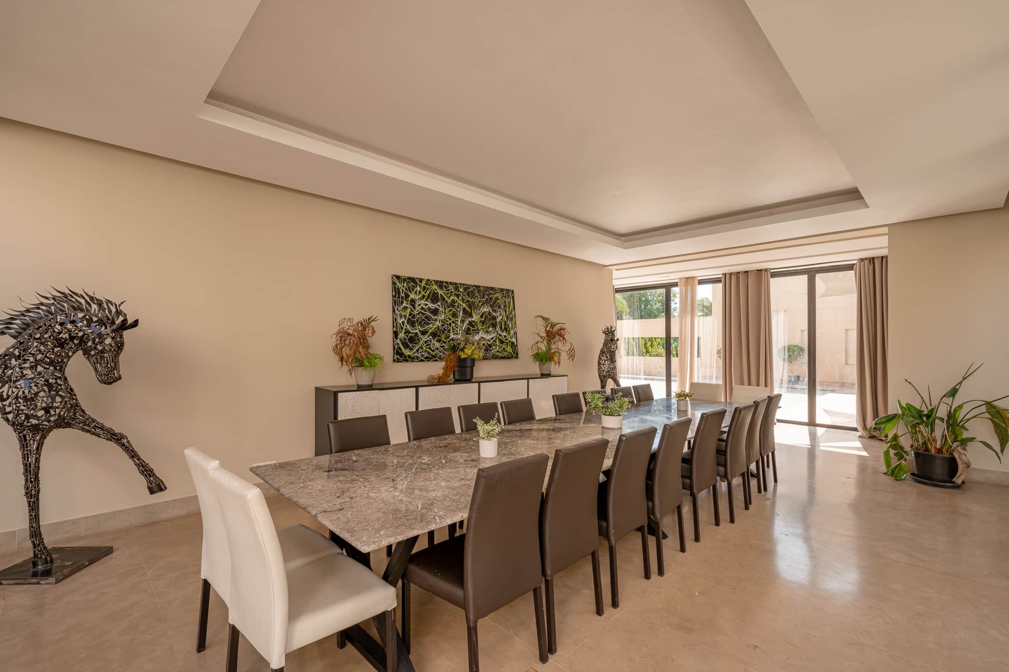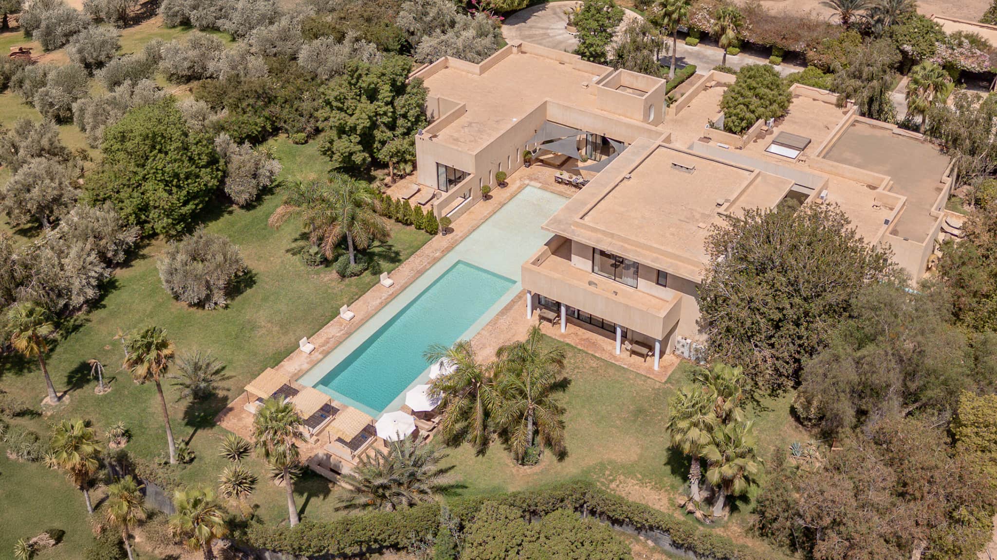 Organisée autour d’une piscine majestueuse s’étendant au milieu d’un jardin luxuriant, la villa allie authenticité marocaine et élégance contemporaine. Ses intérieurs spacieux et lumineux, décorés avec raffinement, créent une atmosphère propice à la détente et au partage.