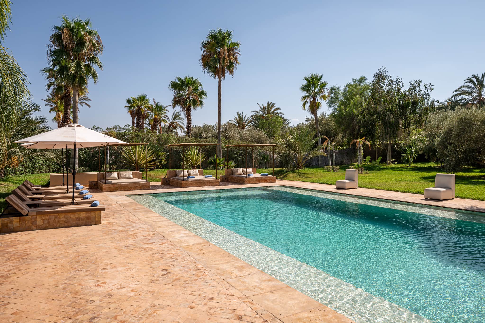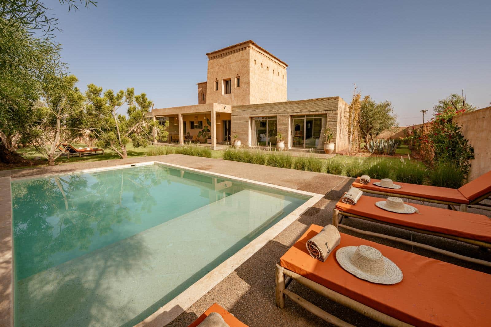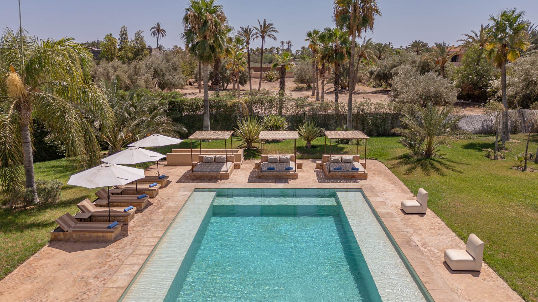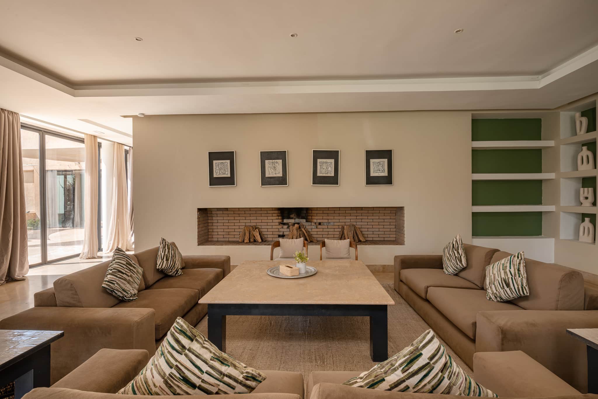 Organisée autour d’une piscine majestueuse s’étendant au milieu d’un jardin luxuriant, la villa allie authenticité marocaine et élégance contemporaine. Ses intérieurs spacieux et lumineux, décorés avec raffinement, créent une atmosphère propice à la détente et au partage.