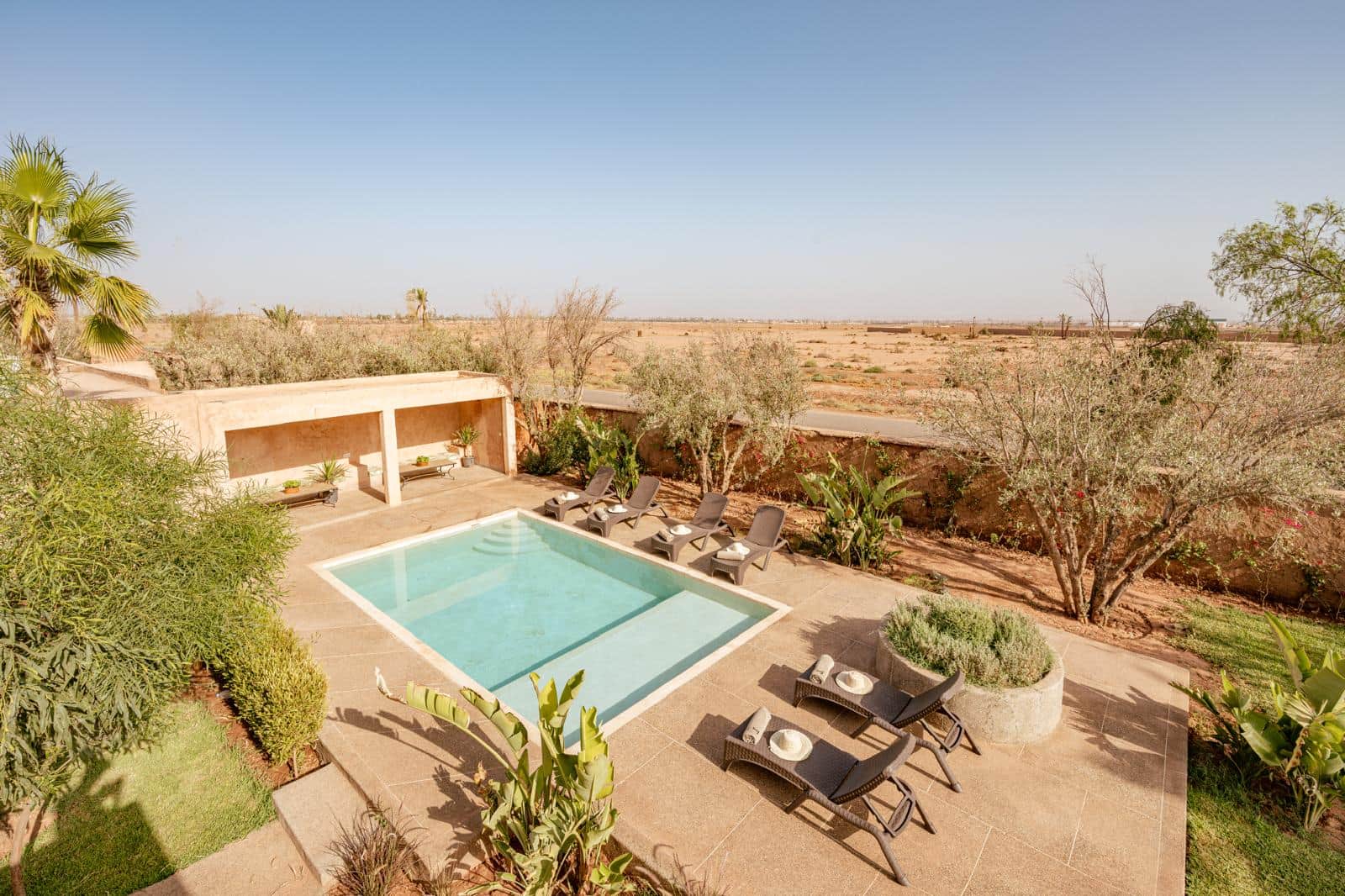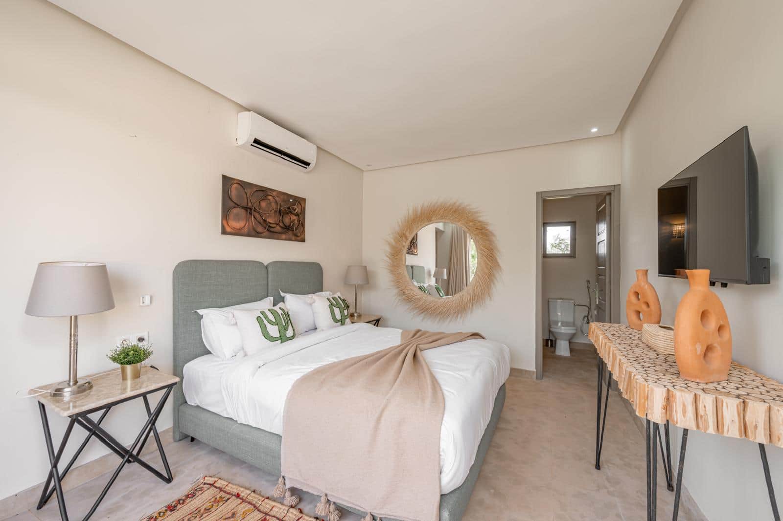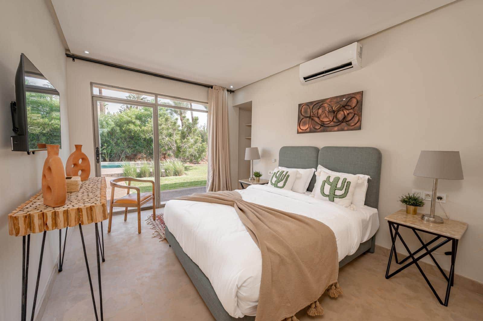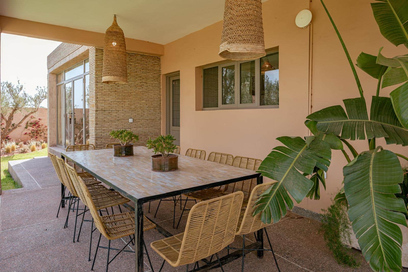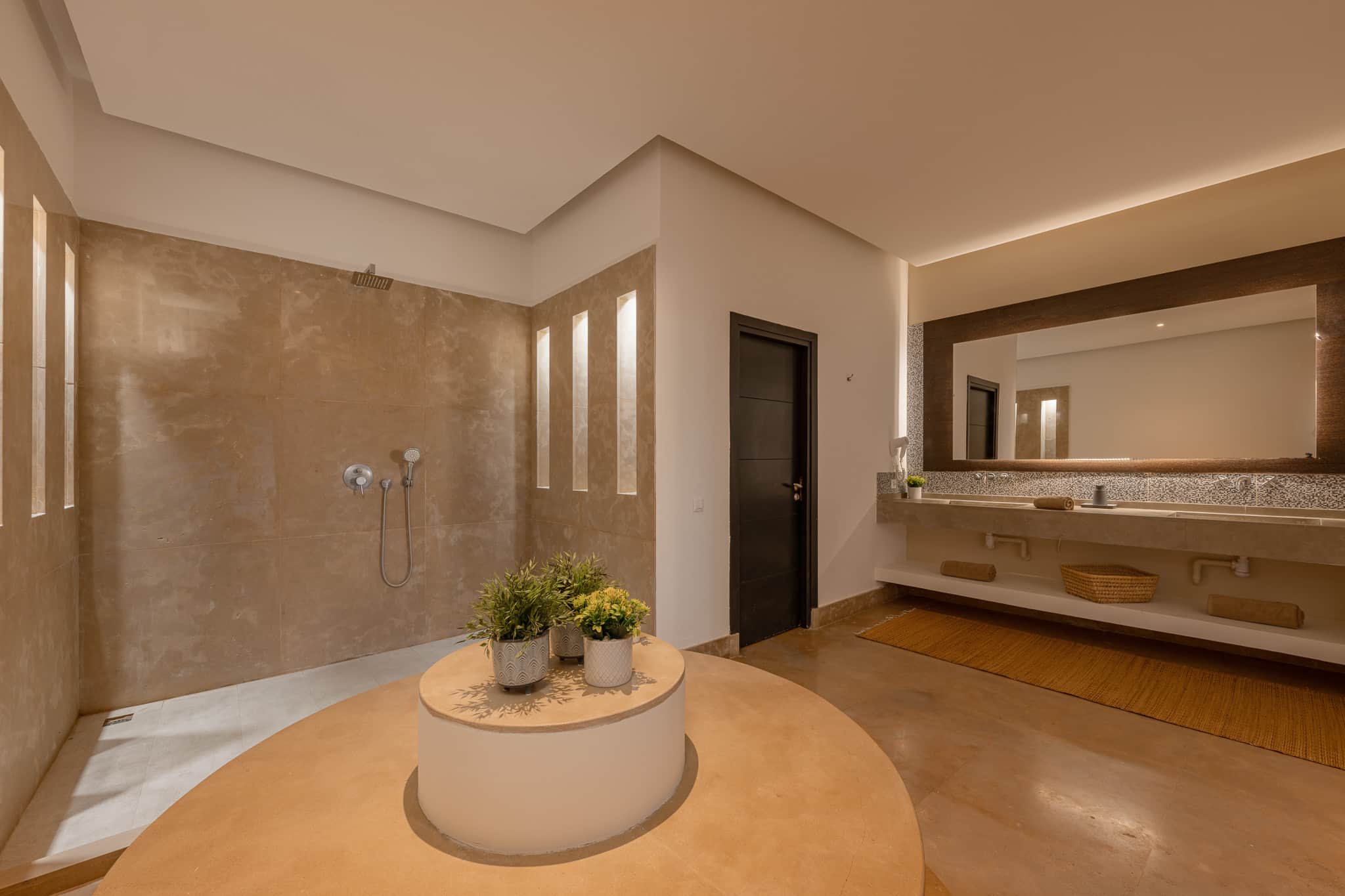 Organisée autour d’une piscine majestueuse s’étendant au milieu d’un jardin luxuriant, la villa allie authenticité marocaine et élégance contemporaine. Ses intérieurs spacieux et lumineux, décorés avec raffinement, créent une atmosphère propice à la détente et au partage.