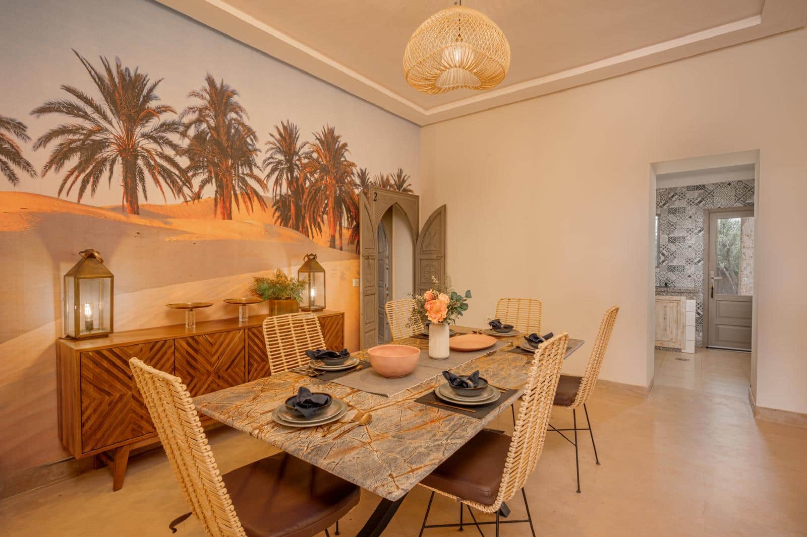 Niché au cœur de Marrakech, ce joyau de 6 chambres allie élégance contemporaine et charme oriental. Pensée pour accueillir familles et groupes d’amis, la villa offre de vastes espaces lumineux, un design raffiné et tout le confort moderne.